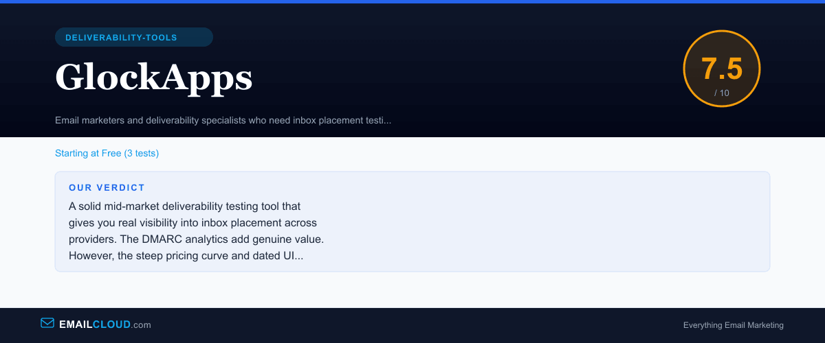 The company has been in the deliverability space for over a decade, building out its test infrastructure and expanding beyond simple inbox placement into DMARC analytics, content analysis, and automated monitoring. For deliverability professionals and email marketers who need more than gut instinct to diagnose placement issues, GlockApps provides the empirical data that drives real troubleshooting.
