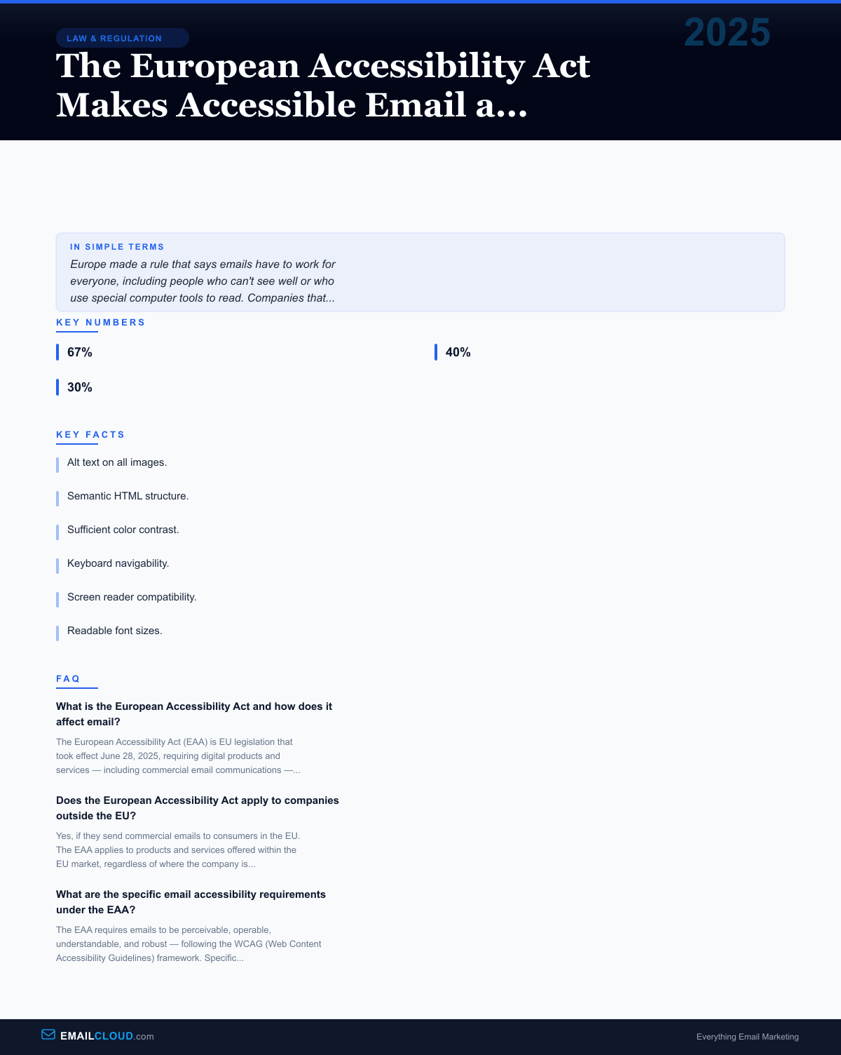 On June 28, 2025, the European Accessibility Act changed the equation. Accessible email is no longer optional for anyone doing business in the EU. It is a legal requirement, and non-compliance carries financial penalties.