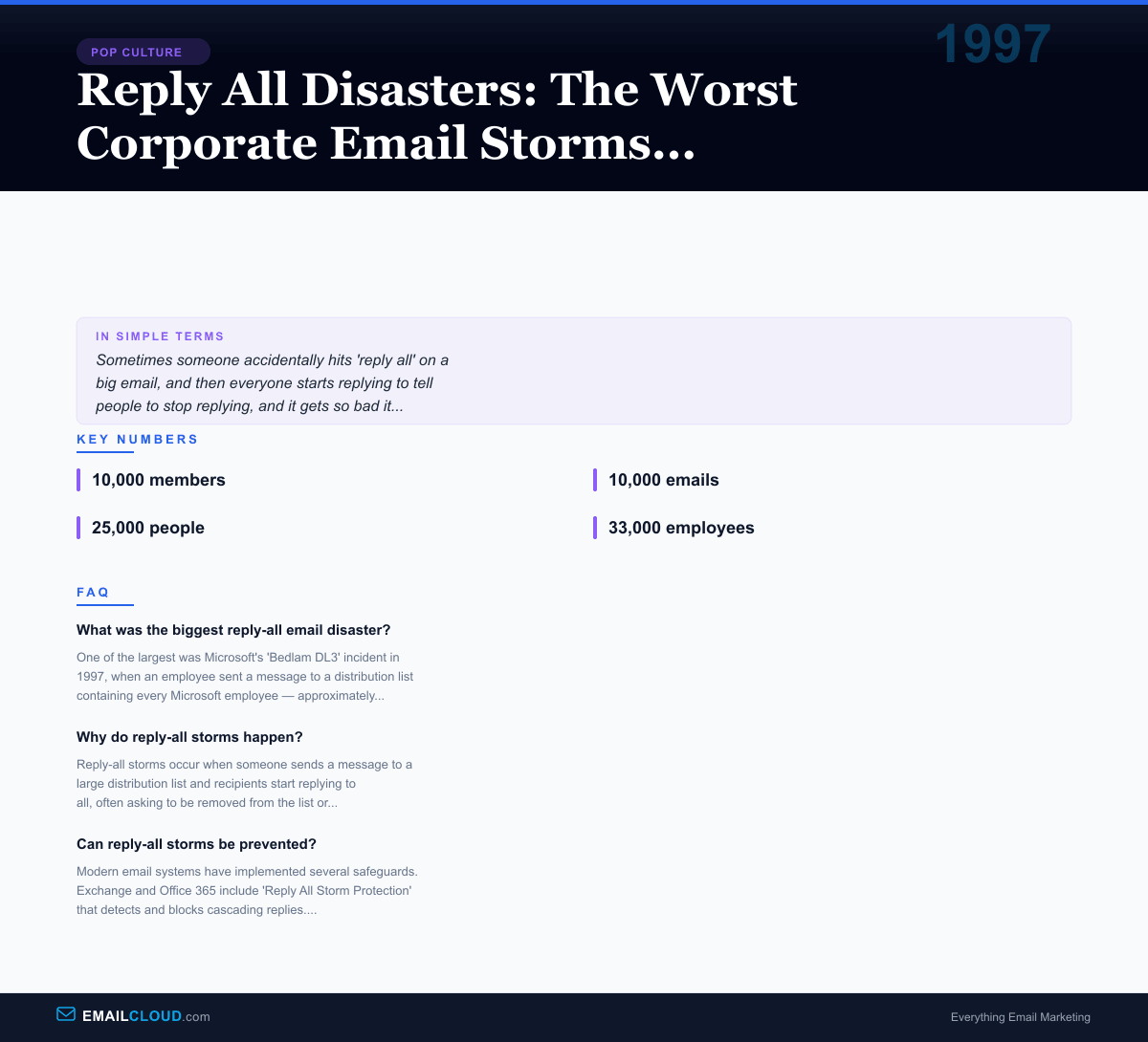 Reply All Disasters: The Worst Corporate Email Storms in History — visual summary and key facts infographic