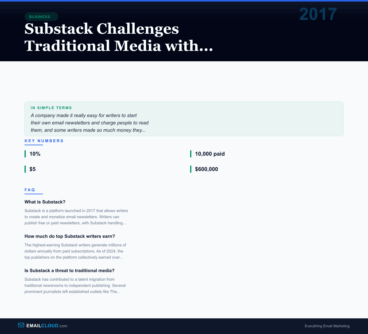 Substack Challenges Traditional Media with Email Newsletters — visual summary and key facts infographic