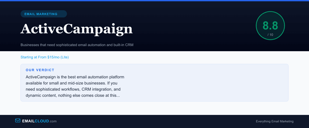 ActiveCampaign is the best email automation platform available for small and mid-size businesses. If you need sophisticated workflows, CRM integration, and dynamic content, nothing else comes close at this price point. The lack of a free plan and steeper learning curve are the only real drawbacks.