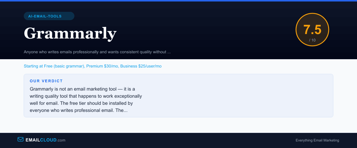 Grammarly is not an email marketing tool — it is a writing quality tool that happens to work exceptionally well for email. The free tier should be installed by everyone who writes professional email. The premium plan is justified for high-volume writers who need tone detection, clarity scoring, and GrammarlyGO rewrites. It will not replace a dedicated email copywriting tool, but it makes every email better.