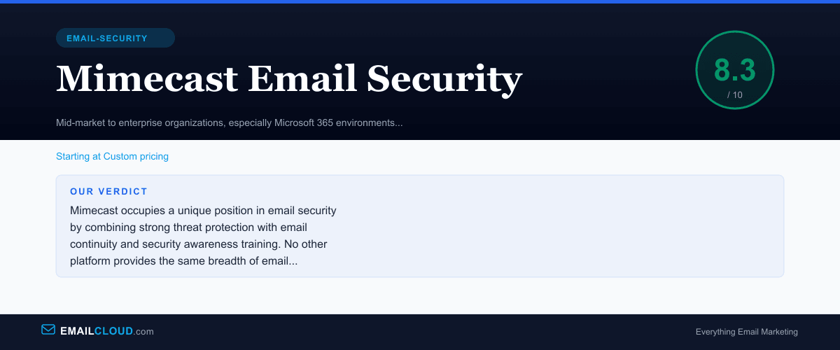 Against Proofpoint, Mimecast provides broader operational capabilities (continuity, training) but slightly less sophisticated threat detection. Proofpoint’s threat intelligence and BEC protection are stronger. Mimecast’s email continuity and integrated training give it advantages Proofpoint cannot match. For pure security, Proofpoint wins. For email resilience, Mimecast is the more complete platform.
