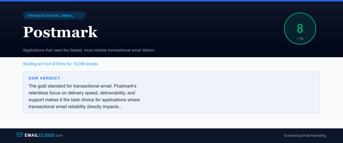 Postmark earns the highest rating in our transactional email reviews because it does one thing better than anyone else: deliver transactional email fast, reliably, and with exceptional inbox placement. The specialist approach — refusing marketing email, maintaining dedicated infrastructure, and investing in support quality — creates measurable advantages that generalist platforms cannot replicate.