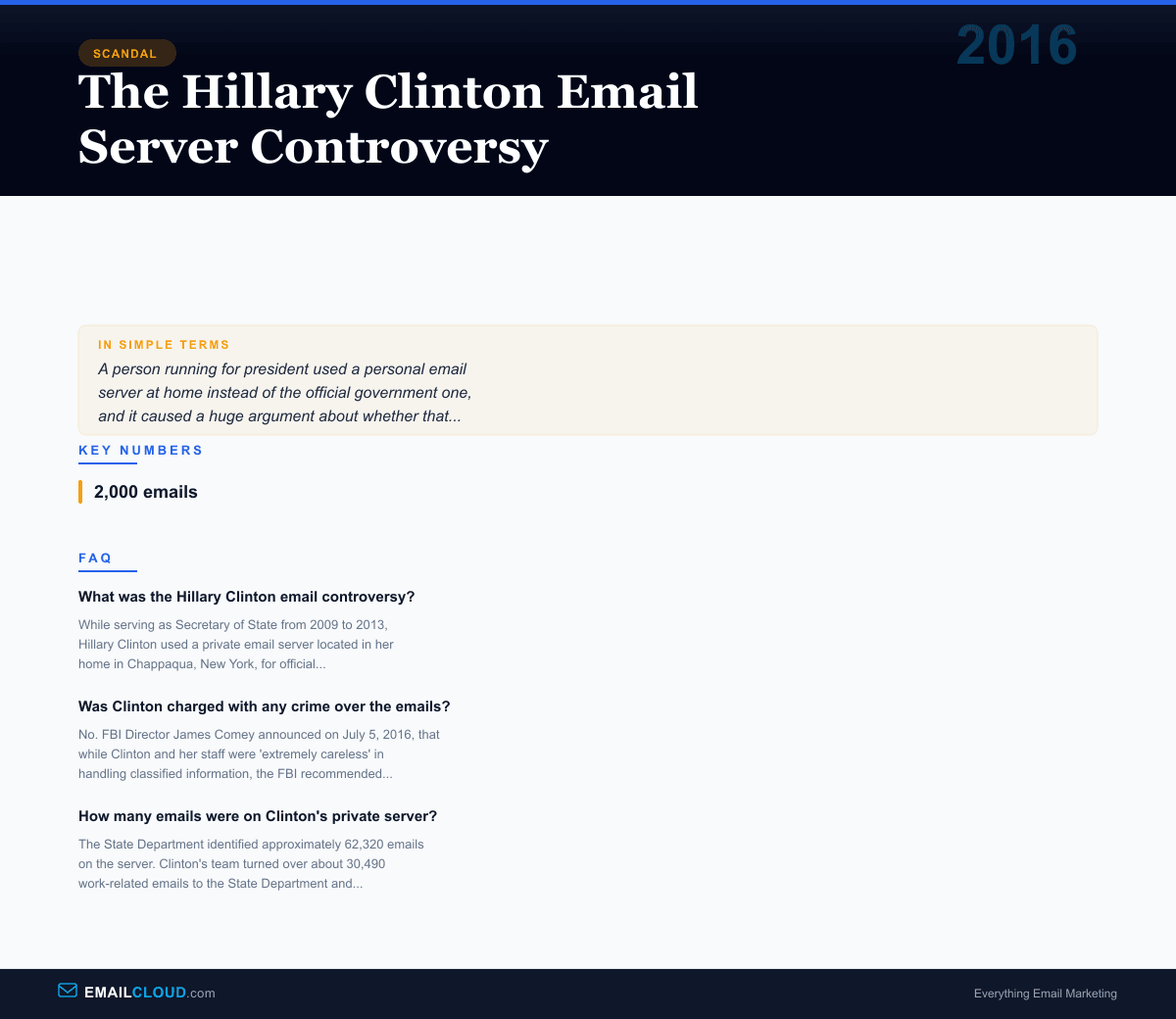 The revelation launched an investigation, a political firestorm, and an enduring debate about email, security, transparency, and power.