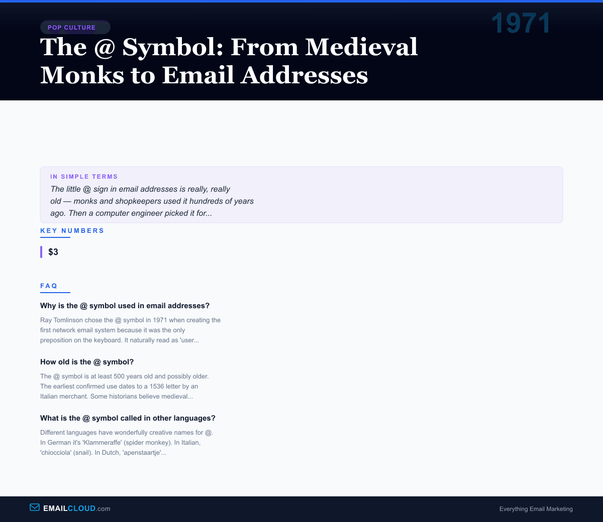 1971: The @ Symbol: From Medieval Monks to Email Addresses